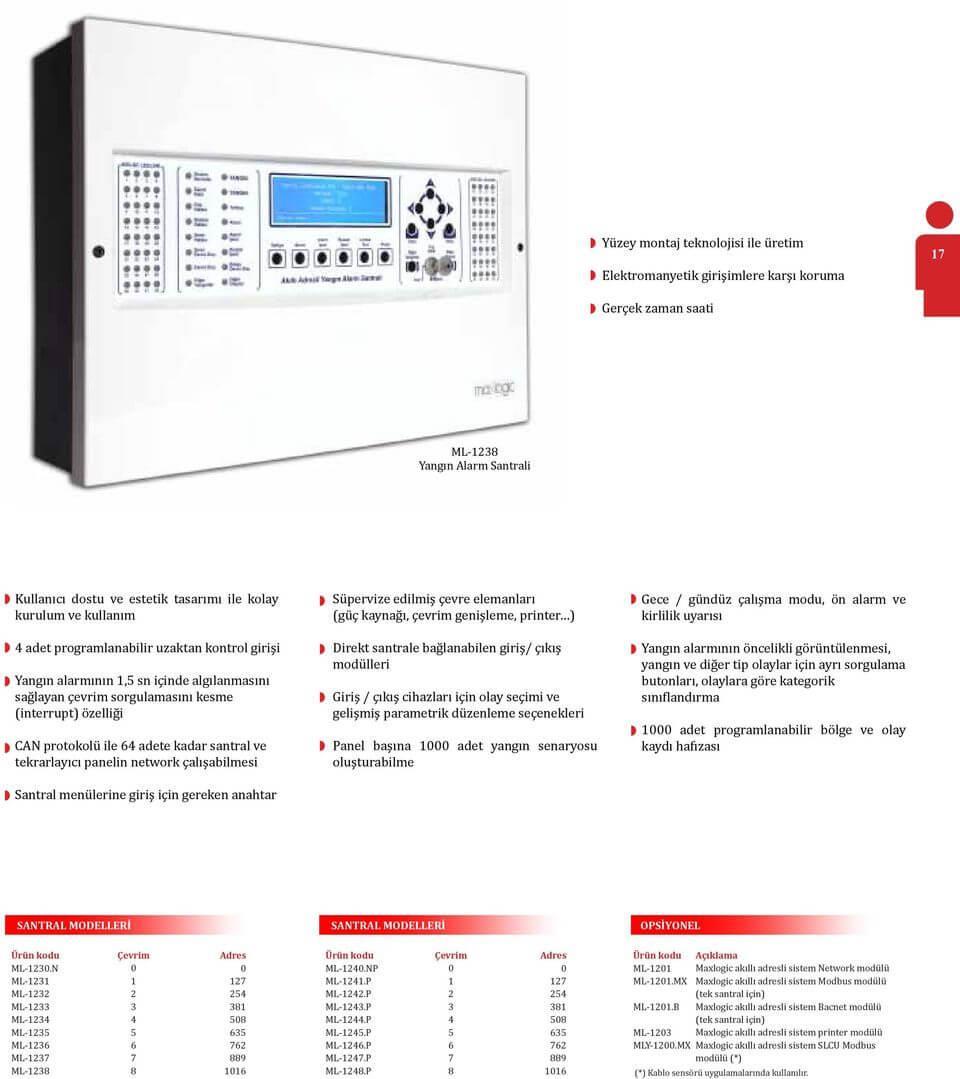 8 çevrime kadar genişleyebilen modüler yapı ile max. 1016 adres kapasitesi