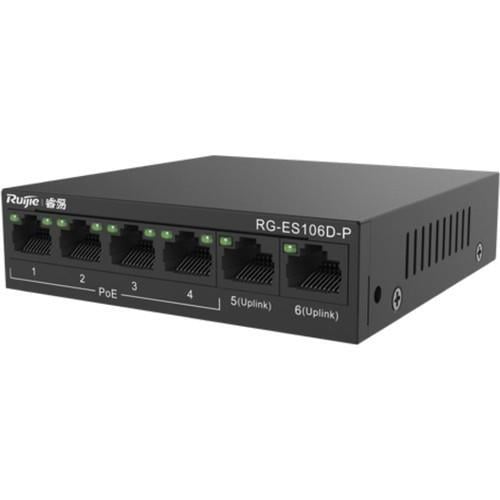 Ruijie Reyee RG-ES106D-P 6 Port 10/100 2xUplink 58W 4Port Poe Yönetilemez Switch