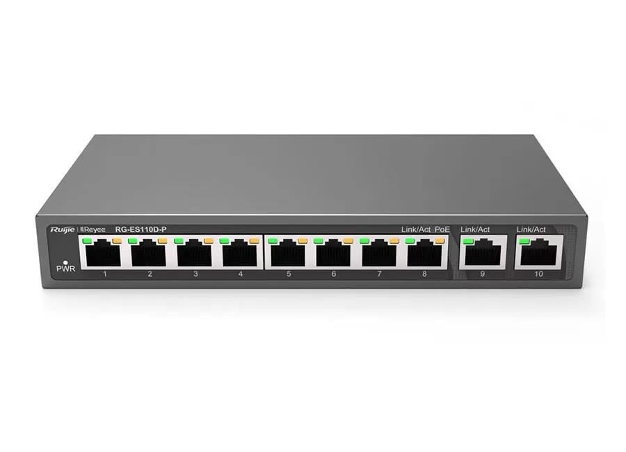 Ruijie Reyee RG-ES110D-P 10port 110w 2xGigabit Uplink 8 Port PoE Yönetilemez Switch