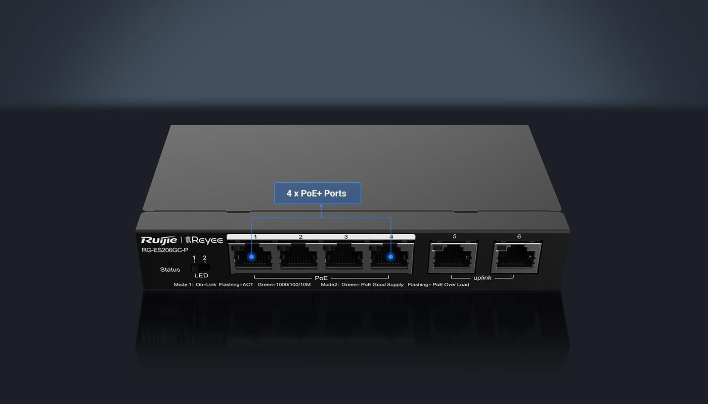 Ruijie Reyee RG-ES206GC-P 6 Portlu 4 Port Poe(54w)Gigabit Yönetilebilir Switch (PROJELERE ÖZEL FİYAT TEKLİFİ ALMAK İÇİN BİZİMLE İLETİŞİME GEÇİNİZ.)