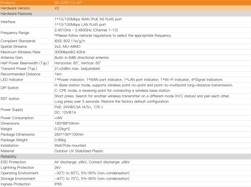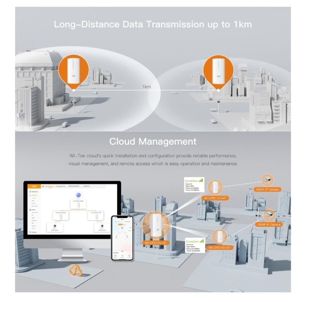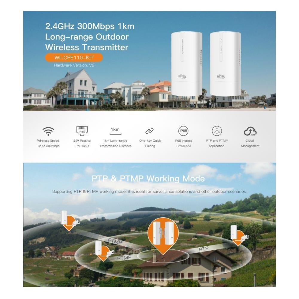 Wi-Tek WI-CPE110-KIT V2 2.4ghz 300mbps 1Km Cloud 2’li Kablosuz Aktarıcı